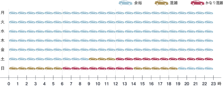 * 駐車場が混雑する時間には、出来るだけ公共交通の利用を推奨します。(祝日、名節、大輸送期間は常時混雑)